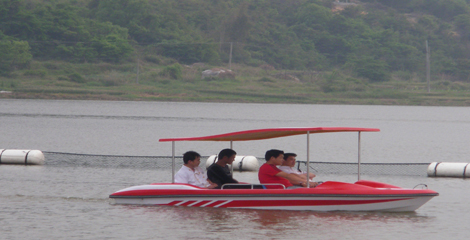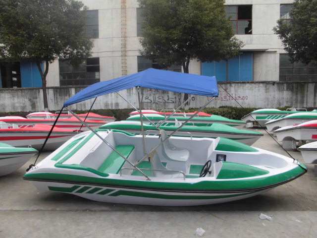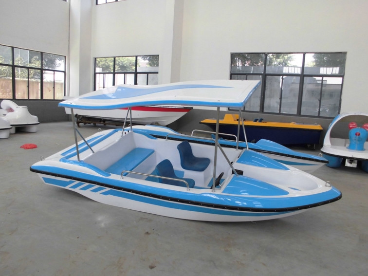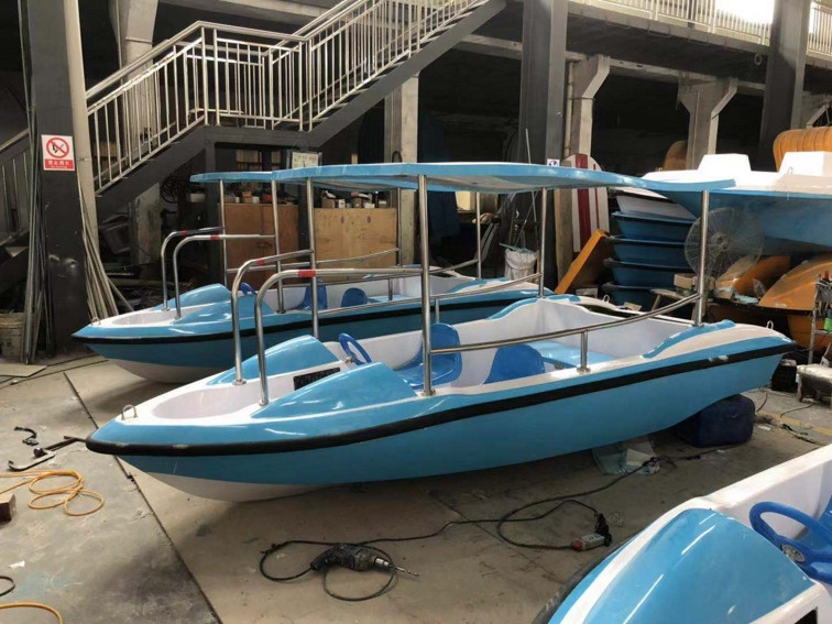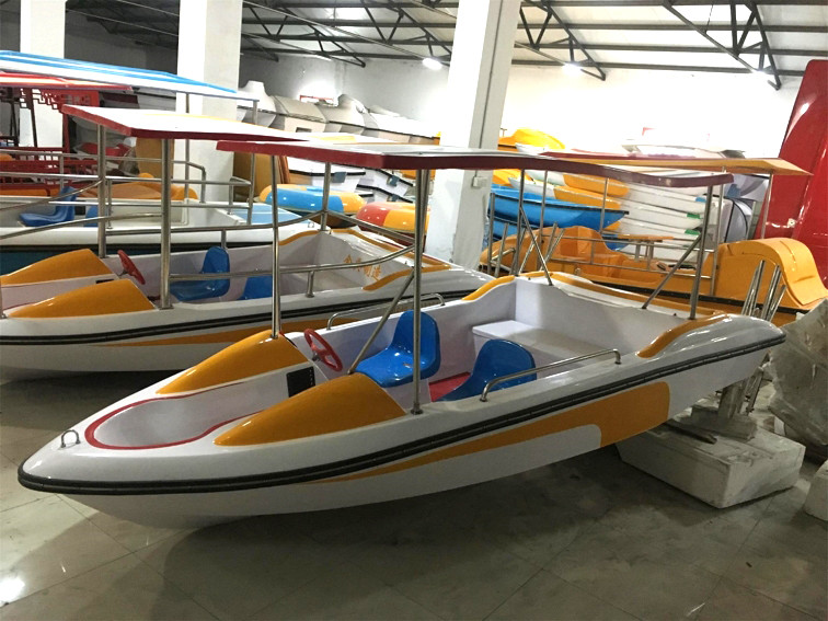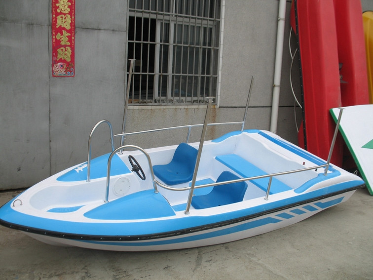 | 特點:船體材質(zhì)玻璃鋼,具有強度高、重量輕、耐腐蝕、不怕日曬雨淋、色彩艷麗、外型美觀的特點。電瓶驅(qū)動,沒有污染,可由游客自行駕駛??晒┕珗@水域、湖泊、水庫、水上游樂。船體寬敞,船頭凹甲板,游客上下方便。 | |||||